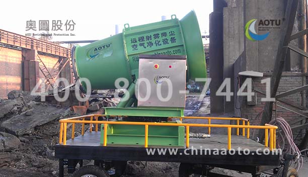 6、功轉(zhuǎn)換效率高、射程遠、覆蓋面積大、霧粒細小且均勻、抑塵效果好。水霧與飄在空中的塵埃接觸時,被塵埃所吸附,加大塵埃的比重,抑制塵埃在空氣中的流動,并加速塵埃沉降,實現(xiàn)對空氣的凈化。